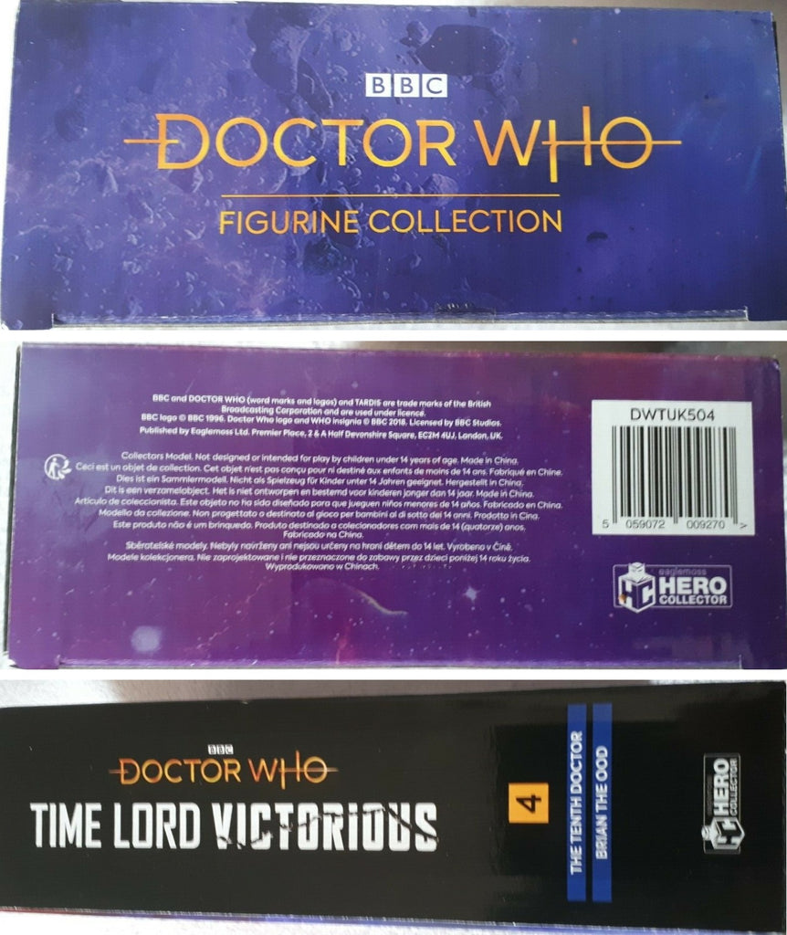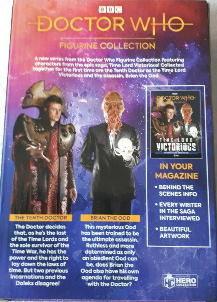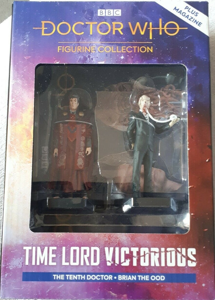 The forth and final figurine box set in this collection introduces Time Lord Victorious and Brian the Ood. As war rages across time and space, the Daleks return to the cosmos, but they are far from the most dangerous threat facing the timestream as an alternate version of the Tenth Doctor has emerged, clad in Gallifreyan robes and proclaiming himself the Time Lord Victorious! Also included is an in-depth companion magazine that highlights the huge range of creative talent involved across the entire Time Lord Victorious adventure and is packed with behind-the-scenes details.