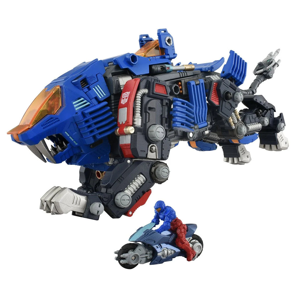 The Takara Tomy Synergenex Series Shield-D-Prime combines 3 fan-favorite properties, Transformers, Zoids, and Diaclone, into 1 premium converting figure. Convert from Optimus Prime robot into Zoids Shield Liger with motorized mouth and light-up cockpit. Set includes attachable weapons like FZ Ion Blaster, Twin FZ Beam, and Triple Impact Cannon as well as Bullet Core vehicle and Road Viper armored bike. Comes with 2 Diaclone Corps figures that can fit in the cockpit and can sit on Road Viper and Bullet Core. This Shield-D-Prime action figure for adults is highly articulated for display and features authentic Takara Tomy design and deco, original packaging, and Japanese language instructions. Figure scale: 10.2 inches (260 mm)