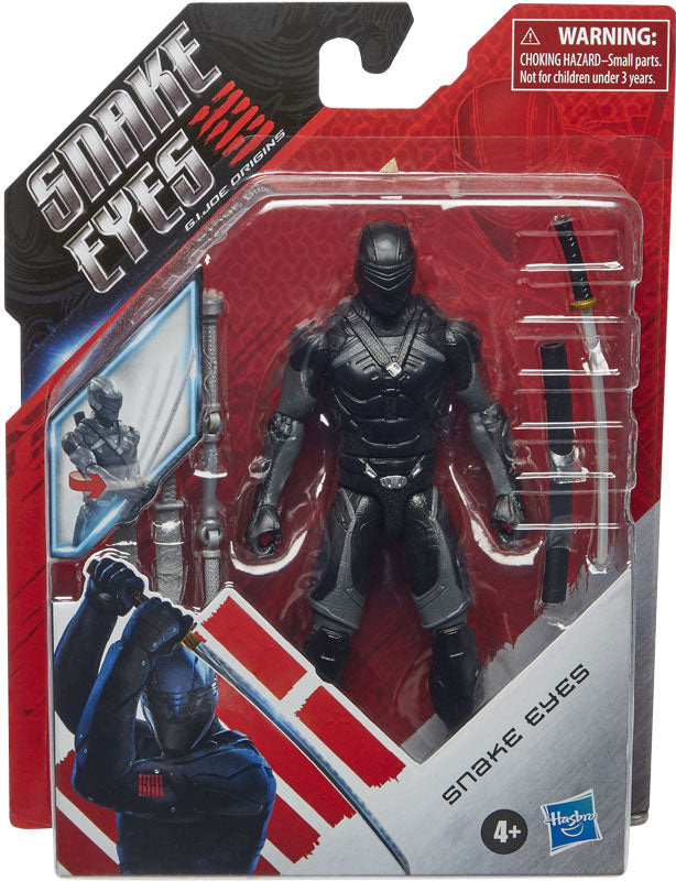 Kids can imagine unsheathing their katanas and ninja-kicking into action and adventure with Snake Eyes! Enter a world of cutting-edge technology, traditional Ninjutsu weapons, breathtaking martial arts, and Next-Gen Ninjas with the Snake Eyes: G.I. Joe Origins Snake Eyes action figure! This Snake Eyes toy comes ready for action, with multiple points of articulation for poseability and character-inspired accessories!