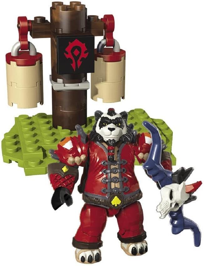 From World of Warcraft by Mega Bloks, build and customize Rojo, the confident Horde Pandaren Hunter, with interchangeable gear featuring Gronnstalker’s Spaulders and bow. Includes a Horde training build inspired by the Pandaren inhabited Panderia.