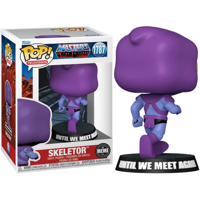 POP! Skeletor is here to drop some bizarre facts and run! Commemorate a pop culture sensation and expand your Masters of the Universe lineup when you make this exclusive Until We Meet Again POP! Skeletor the next addition to your POP! Memes collection. This vinyl figure is approximately 4.5 inches (11.4 cm) tall. Comes in window-box packaging, so this can be displayed in-box.