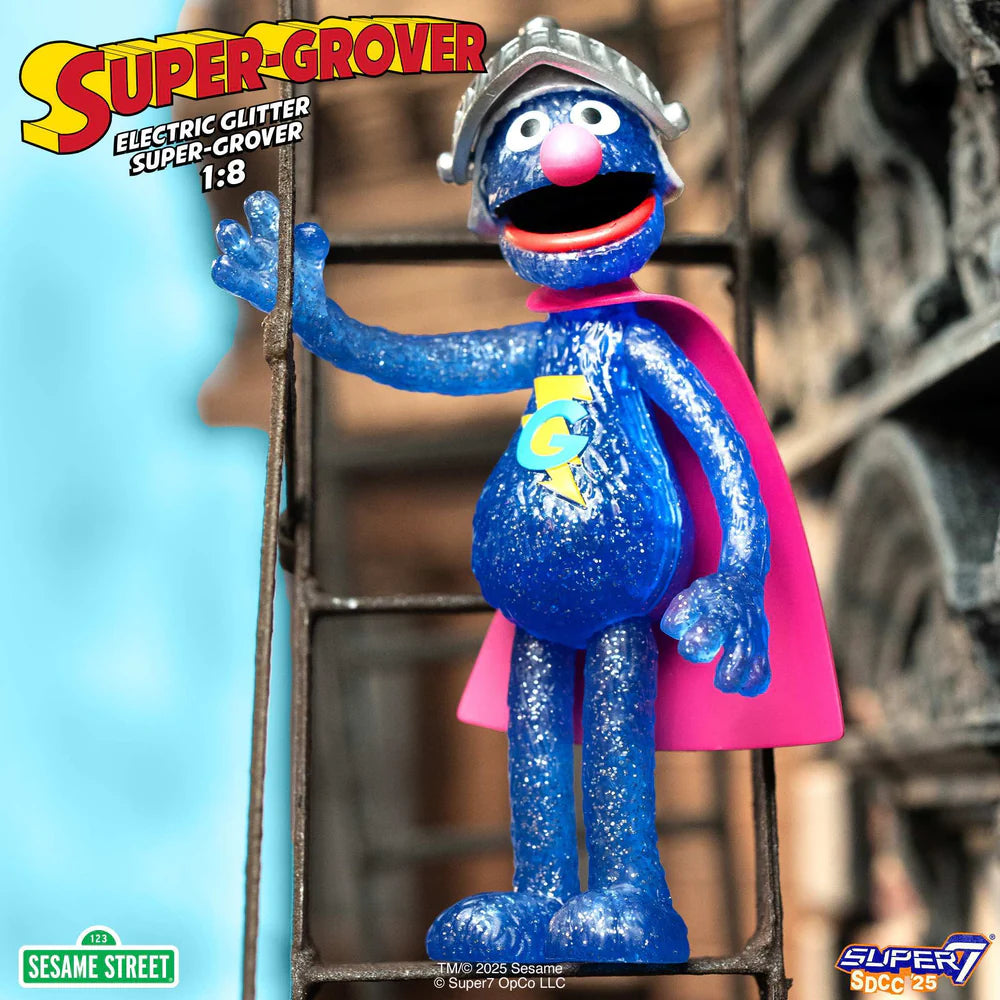 No one brings heroic charm and chaotic determination to Sesame Street like Super Grover! Whether zooming into action with a glittering flash or valiantly patching up his trusty cape, Super Grover always gives it his all. Super7 proudly presents SDCC (San Diego Comic Con) exclusive blind box variants of the Sesame Street ReAction Figure of Super Grover: the Electric Glitter edition OR the Worn Cape edition! These 3.75-inch scale, articulated figures celebrate one of the street’s most lovable heroes in two unforgettable styles. Packaged in a blind box, you have to open it to see which version you get! There is a 1 in 8 chance to receive the special electric glitter version with details that sparkle. These Super Grover figures are perfect for any Sesame Street fan ready to add some super-fueled nostalgia to their collection.