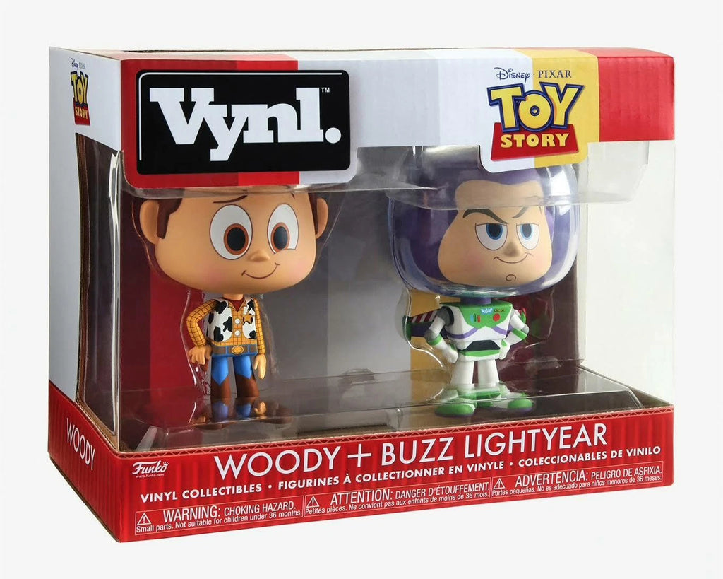 From Disney-Pixar’s Toy Story, Woody and Buzz Lightyear as a Vynl.-stylized 2-pack from Funko! Figures stand approximately 3.75 inches tall and come in a window display box. This dynamic duo is perfect for any Disney fan!