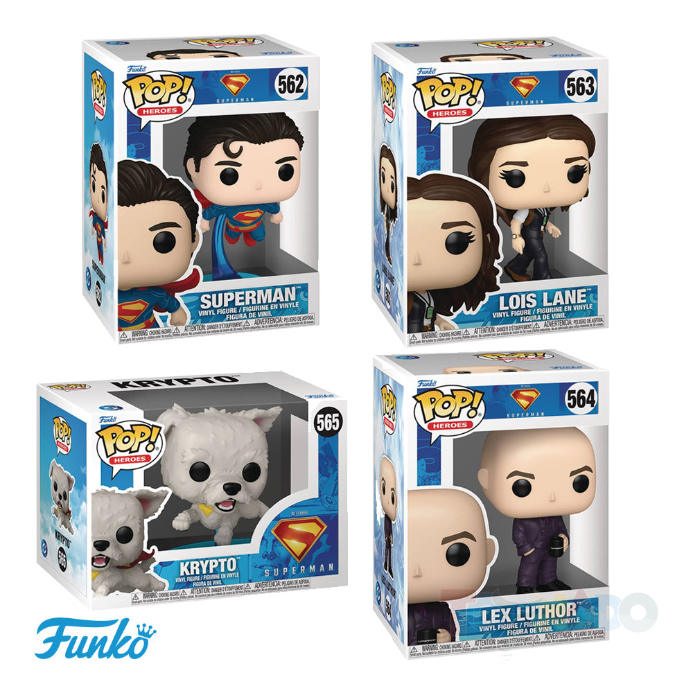 Get ready for a brand new adventure with Superman and Krypto in Superman (2025) by adding these Pop! Figures to your DC collection! Pop vinyl figures measure about 4" tall. Collect Superman, Lois Lane, Krypto, and Lex Luthor.