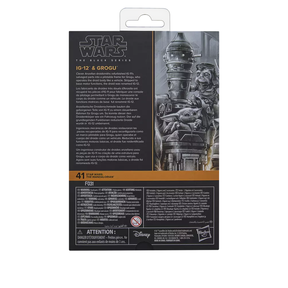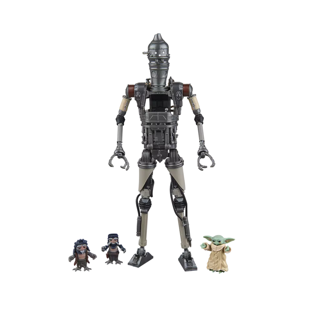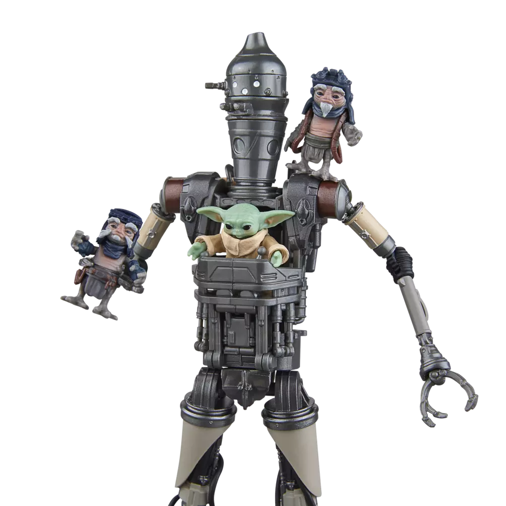 Star Wars The Black Series includes 6 inch action figures, vehicles, and roleplay items from the 40-plus-year legacy of the Star Wars galaxy, letting fans create galactic scenes with a faithfulness to Star Wars comic books, movies, and series. This Star Wars action figure 2-pack is detailed to look like IG-12 & Grogu from Star Wars: The Mandalorian. With exquisite features and decoration, The Black Series embodies the quality and realism that Star Wars devotees love. May the Force be with you!