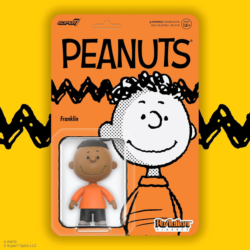 Franklin leads a busy life full of activities and hobbies, but is never too busy to help his friends, and enjoys being part of the gang! The latest articulated, 3.75-inch scale Peanuts ReAction Figure of Franklin is inspired by his appearance in the classic comic strip and features the thoughtful friend in his classic orange shirt and comes packaged on a blistered cardback. The Peanuts gang is always up for a good time, so adding this Franklin Brown ReAction Figure to your collection is sure to brighten your day!