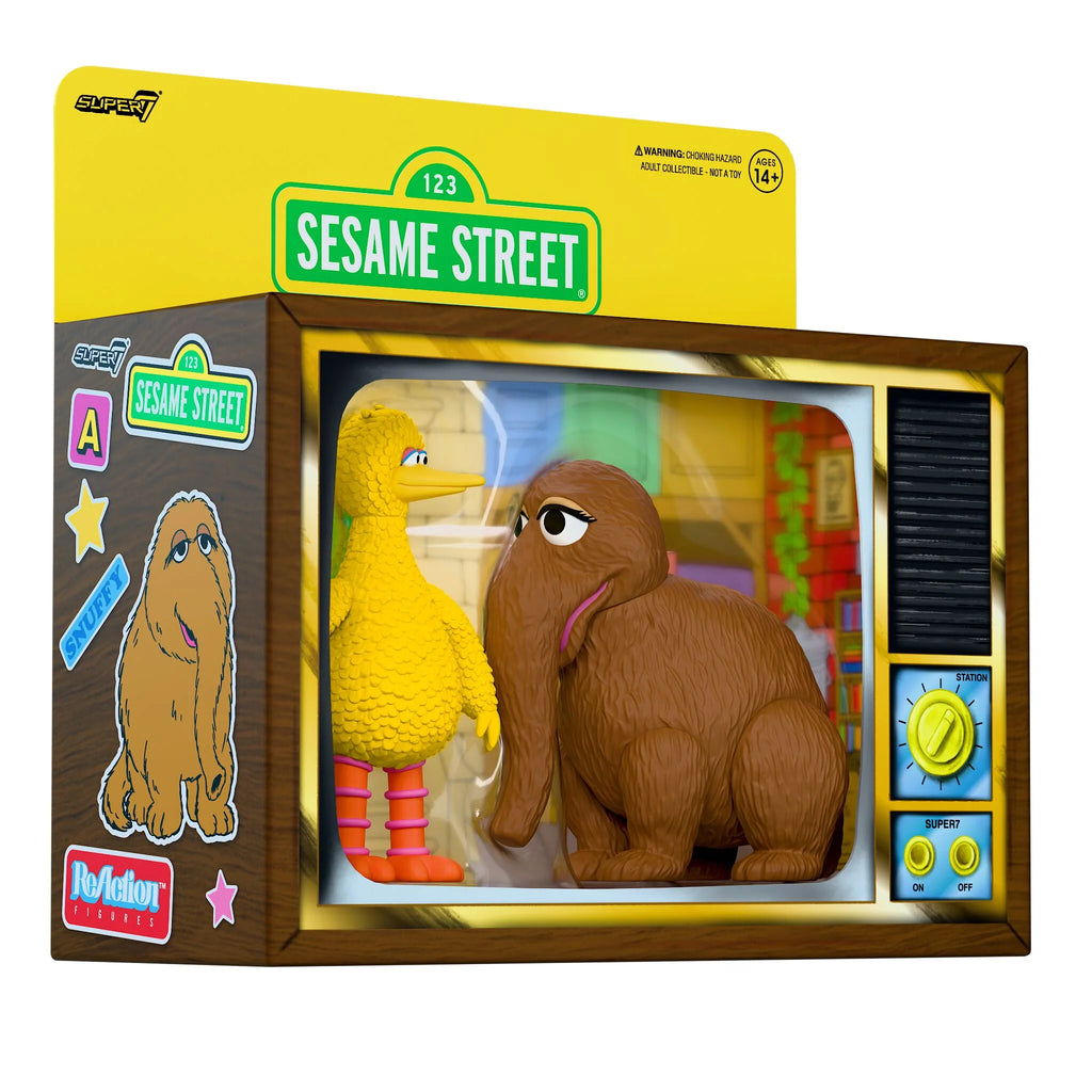 It Is a sunny day on Sesame Street, and Big Bird and Snuffy are ready to add even more fun to your collection! This 2-pack of articulated 3.75-inch scale Sesame Street ReAction Figures of Big Bird and Mr. Snuffleupagus is inspired by the lovable duo’s classic adventures and brings their iconic charm straight to your shelf. Whether they’re strolling down the street, sharing a laugh, or helping out friends, these figures are just as delightful as their TV counterparts. Packaged in vintage TV set-inspired window-box packaging with a connect the dots game on the back, this dynamic pair is ready for play or display! Make sure to pick up this Sesame Street ReAction Figure 2-pack—it’s not just your imagination; it’s the real deal!