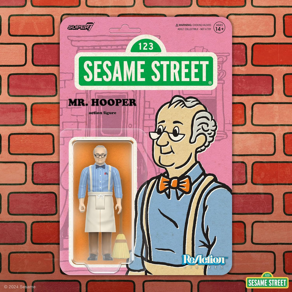 Mr. Hooper is the proprietor of Sesame Street’s corner candy shop; in addition to sweet treats, his customers also often received valuable life-lessons when they visited! This 3.75-inch scale, articulated Sesame Street ReAction Figure of Mr. Hooper depicts the sweet shopkeeper in his signature shirt and apron, and comes with a broom accessory. The rich tapestry of Sesame Street is made more vibrant by its colorful characters, like this Mr. Hooper Sesame Street ReAction Figure!