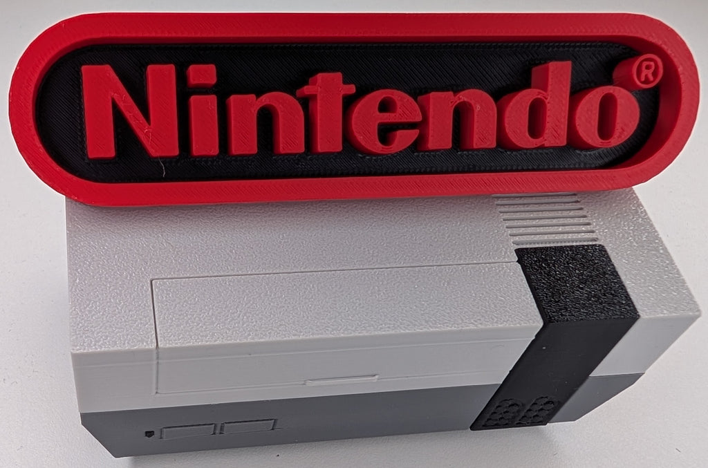 This novelty, pop art, desktop paper weight -- displaying an attractive, eye-catching, red and black, embossed Nintendo logo atop a faux classic Nintendo Entertainment System (NES) console coloured silver, grey and black -- pays homage to the pioneering, 8-bit, home video game console developed and marketed by Nintendo, and launched in North America between 1985 and 1986.