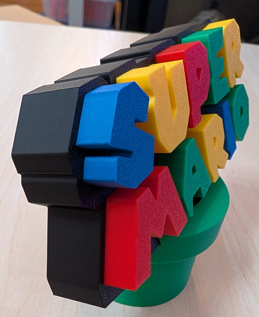 This novelty, pop art, desktop paper weight -- displaying an attractive and eye-catching Super Mario embossed logo in blue, yellow, red and green with a black background, atop a green warp pipe -- pays homage to the legendary platform video game series developed and published by Nintendo and starring their beloved, iconic mascot, Mario.
