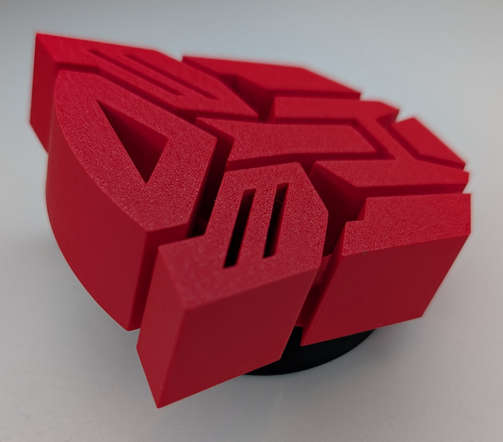 This novelty, pop art, desktop paper weight -- displaying an attractive and eye-catching Transformers, Autobot faction embossed logo in red with a black base -- pays homage to the expansive Transformers franchise beloved by kids and adults alike.