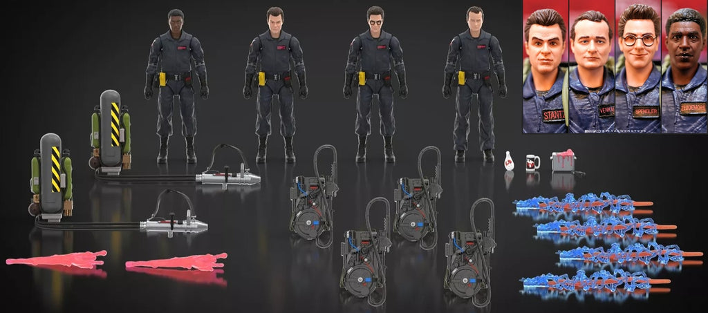 Yes, that is right, Ghostbusters -- they are back with TWICE the know-how and TWICE the particle power to deal with all your supernatural elimination needs. So come, celebrate the grand re-opening with 4 Ghostbusters: Plasma Series, Ghostbusters II action figures of the original ghost-busting foursome, with all-new head sculpts and wearing their highly sought-after charcoal jumpsuits! Also included are 4 Proton Pack and 4 Plasma Stream effect accessories, plus 2 Ecto-Charger Pack and 2 Ecto-plasm Stream effect accessories, so you can re-create favorite moments from Ghostbusters II. Of course, Haslab could not celebrate the hilarious follow-up to Ghostbusters (1984), the aptly titled Ghostbusters II (1989), without including the unofficial fifth Ghostbuster, so as a special bonus, a 6-inch scale Louis Tully (Ghostbusters I) action figure is also included along with his own Proton Pack, Plasma Stream effect, Ghost Trap and P.K.E. Meter accessories.