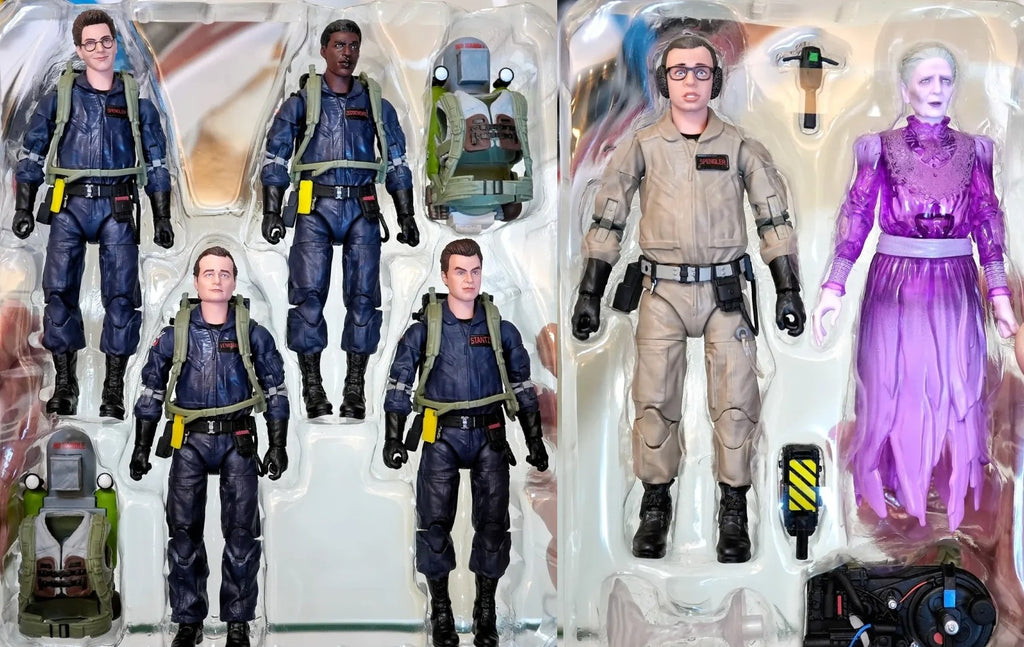 PLASMA SERIES (GHOSTBUSTERS II) DREAM TEAM, PLUS 1: The 4 original Ghostbusters, as seen in Ghostbusters II, as action figures in 6-inch scale, with all-new head sculpts, wearing their highly sought-after charcoal jumpsuits, and including 4 Proton Pack and 4 Plasma Stream effect accessories, plus 2 Ecto-Charger Pack and 2 Ecto-plasm Stream effect accessories. Joining the team is the unofficial 5th Ghostbuster, Louis Tully along with his own Proton Pack, Plasma Stream effect, Ghost Trap and P.K.E. Meter accessories.