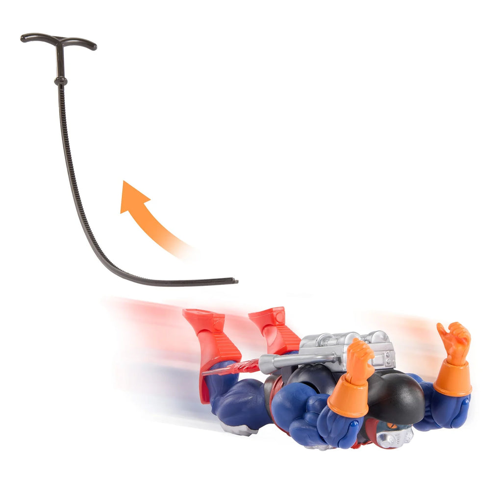 • The included ripcord sends the figure zooming across flat surfaces when pulled.
