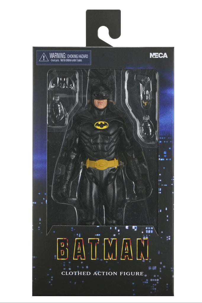 From the iconic 1989 Tim Burton film that defined Batman for a modern generation, NECA presents this clothed Batman action figure featuring the likeness of Michael Keaton. Cloaked in shadow and driven by vengeance, Batman strikes fear into the hearts of Gotham City’s criminal elite. Once terrified by bats, and psychologically damaged from the murder of his parents, wealthy Bruce Wayne channels that fear into his alter ego Batman, donning the cape and cowl to protect the streets of Gotham from low-life criminals and eccentric villains alike. Mob bosses like Carl Grissom rule the city with unchecked power, and the madman known only as The Joker spreads chaos like wildfire, so Batman is the last line of defense between Gotham and total collapse.