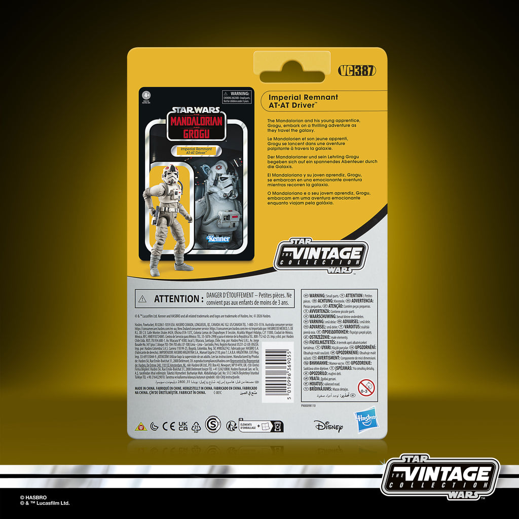 Celebrate the legacy of Star Wars with premium vehicles, playsets and action figures from Star Wars: The Vintage Collection. Based on an Imperial Remnant AT-AT Driver from the 2026 film, Star Wars: The Mandalorian & Grogu, this 3.75-inch scale action figure makes a great addition to any fan collection. Inspired by the original toy line, these collectibles feature premium detail and design across product and packaging, as well as collector-grade deco that fans have come to know and love. May the Force be with you!