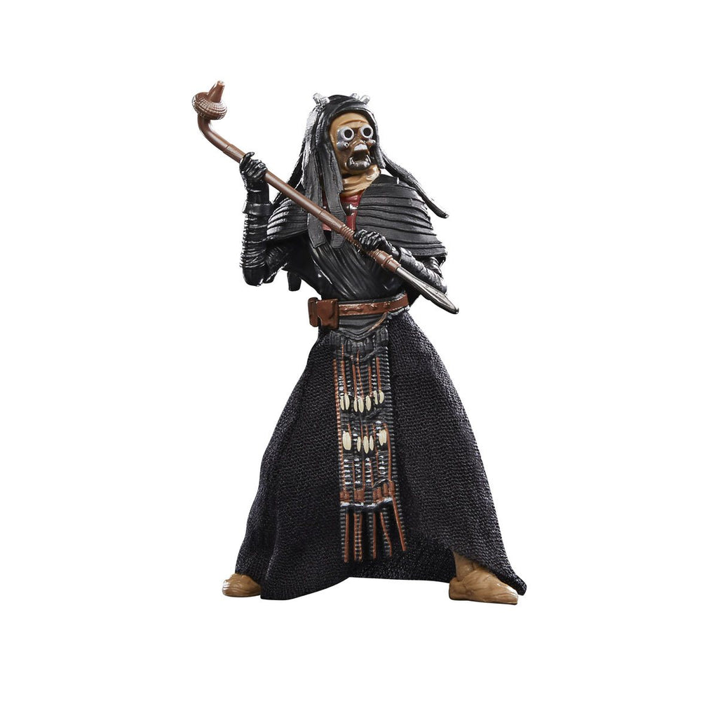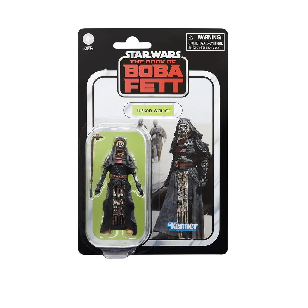 Part of a tribe of Tusken Raiders, Tusken warriors wear abundant clothing to protect themselves from Tatooine’s twin suns. They fear little and make sudden raids on local settlers. As seen in The Book of Boba Fett, this Star Wars The Vintage Collection Tusken Warrior 3 3/4-Inch Action Figure is awesome. She includes a gaffi stick and has a distinct outfit which shows her unique position in her clan.