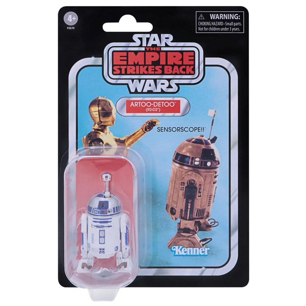 The Artoo-Deetoo (R2-D2) figure is inspired by the original action figures produced by Kenner in the 1970s and 1980s, features premium design across multiple points of articulation, and is presented on an individual Star Wars: A New Hope The Vintage Collection cardback! Body panel opsn with removable arms inside. Sensorscope and third leg retract.